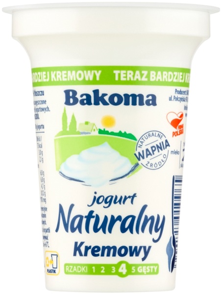 PLN https://en.dodomku.pl/Bakoma_natural_thick_yoghurt_2.8/35915.htmlmleko, śmietanka, mleko zagęszczone odtłuszczone, kultury bakterii jogurtowych (Streptococcus thermophilus i Lactobacillus delbrueckii subsp. bulgaricus) oraz L. acidophilus i(...)