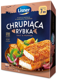 Filet z mintaja 58%, panierka, woda, mąka pszenna, olej rzepakowy i słonecznikowy, panier pieprzowy 4,4%, sól, skrobia, ekstrakty przypraw.